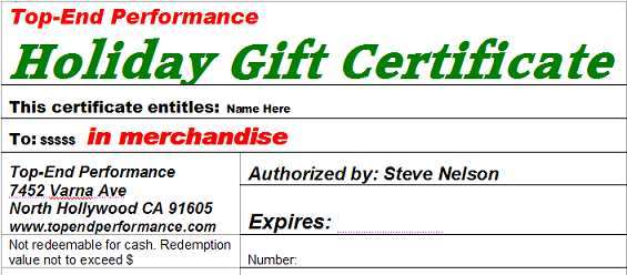 Top-End Performance Gift Certificates